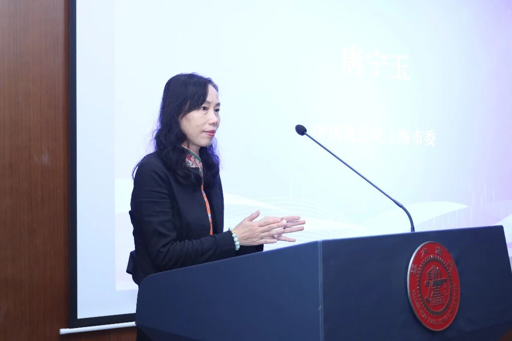 致公党上海市委常委、上海交通大学委员会主委、上海交通大学安泰经管学院长聘教授唐宁玉受致公党上海市委领导委托,代表协办本次论坛的致公党上海市委各个基层组织致辞。唐宁玉主委表示,今年正值致公党建党百年,致公党上海市委贯彻中央统战部门“两个融入”的要求,正积极围绕“人工智能+”议题开展调研,动员各界党员们为推动AI赋能千行百业、促进城市治理能力的提升和公共服务水平优化而奉献力量。
